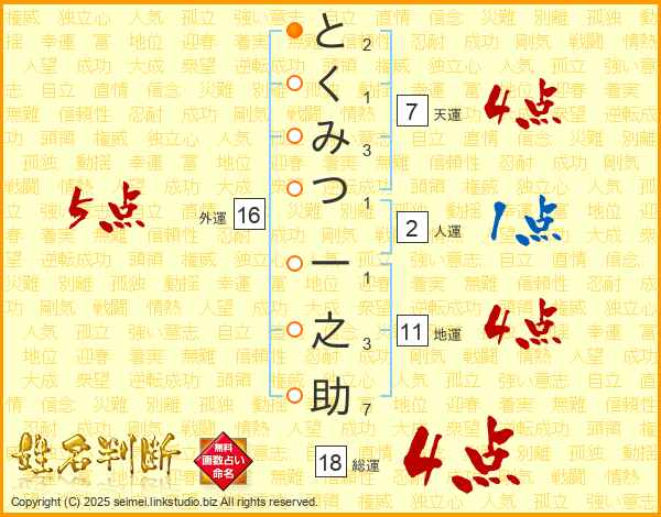 と(2画)く(1画)み(3画)つ(1画) 一(1画)之(3画)助(7画)