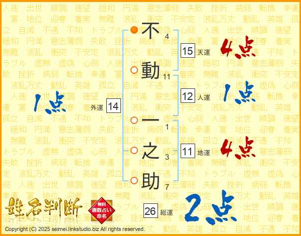 不動一之助さんの総運は26画の2点!