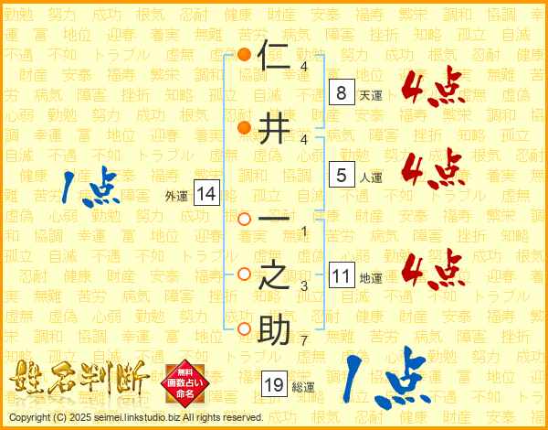 仁(4画)井(4画) 一(1画)之(3画)助(7画)