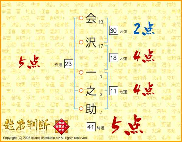 会(13画)沢(17画) 一(1画)之(3画)助(7画)