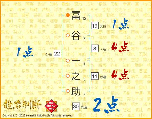 冨(12画)谷(7画) 一(1画)之(3画)助(7画)