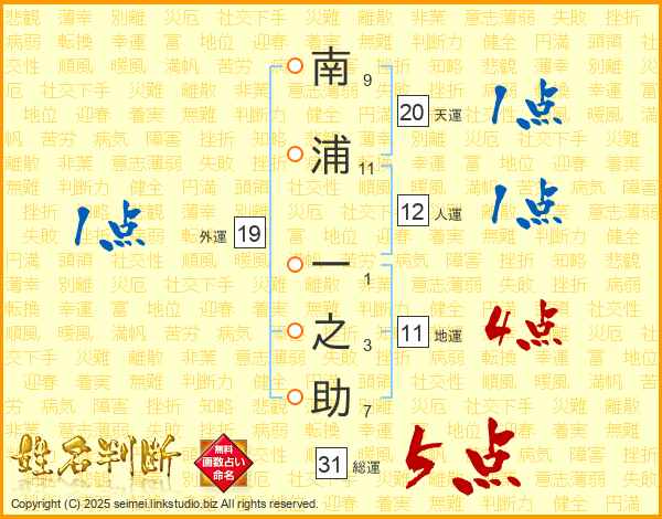 南浦一之助さんの総運は31画の5点!