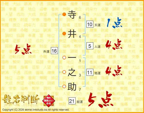 寺井一之助さんの総運は21画の5点!