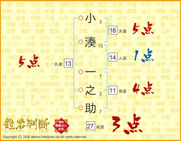 小(3画)湊(13画) 一(1画)之(3画)助(7画)