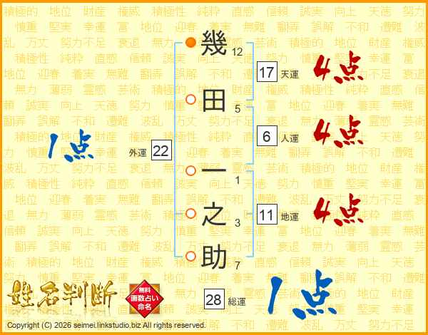 幾田一之助さんの地運は11画の4点!