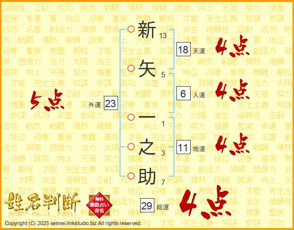 新矢一之助さんの総運は29画の4点!