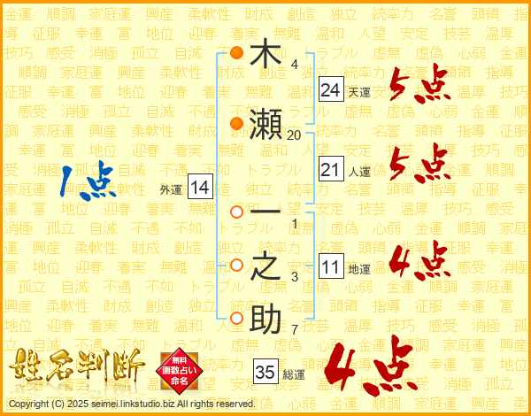 木瀬一之助さんの総運は35画の4点!