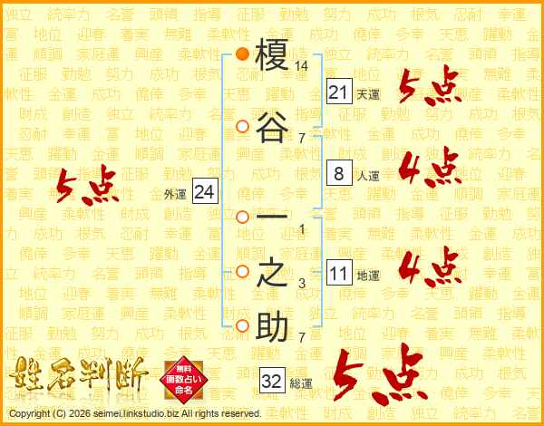榎谷一之助さんの総運は32画の5点!