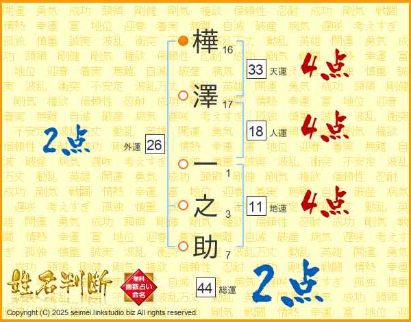樺澤一之助さんの天運は33画の4点!