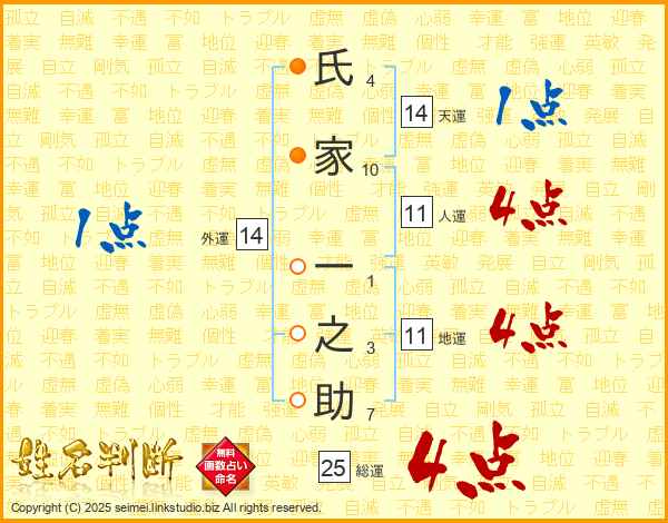 氏家一之助さんの総運は25画の4点!