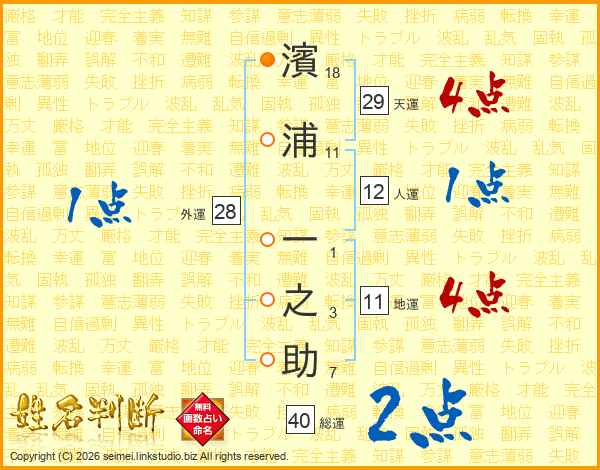濱浦一之助さんの総運は40画の2点!