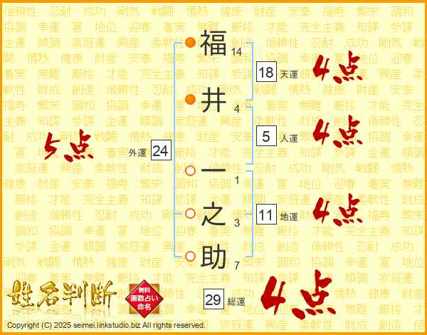 福(14画)井(4画) 一(1画)之(3画)助(7画)