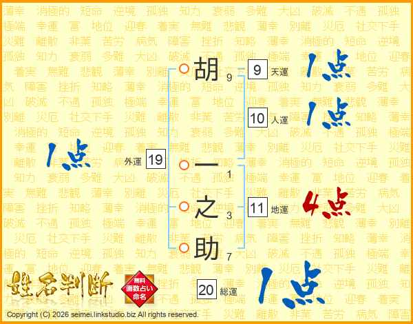 胡一之助さんの総運は20画の1点!