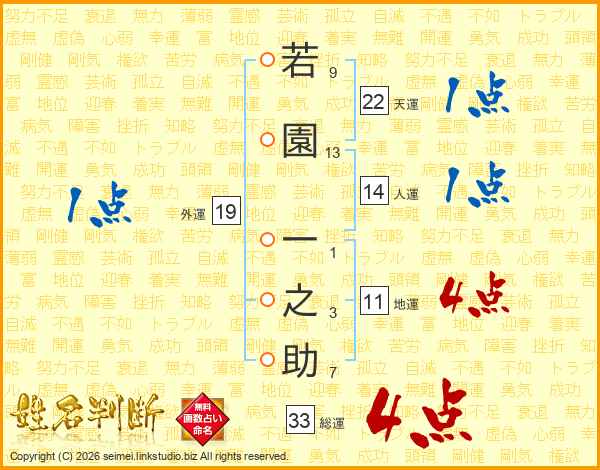 若(9画)園(13画) 一(1画)之(3画)助(7画)
