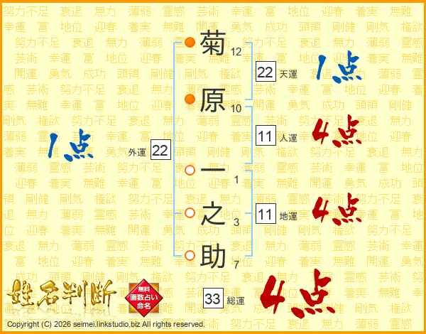 菊(12画)原(10画) 一(1画)之(3画)助(7画)