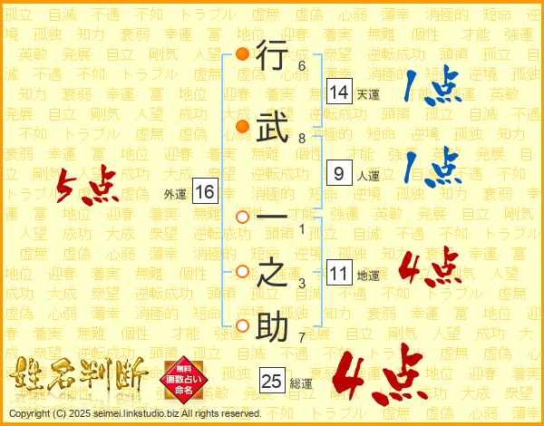 行武一之助さんの総運は25画の4点!