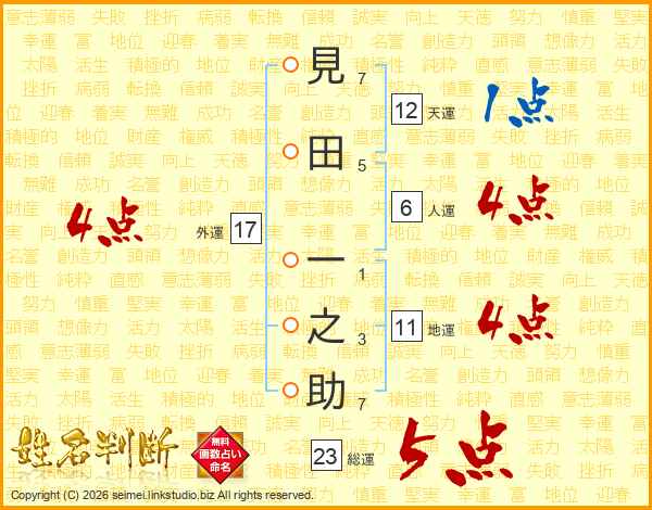見田一之助さんの総運は23画の5点!