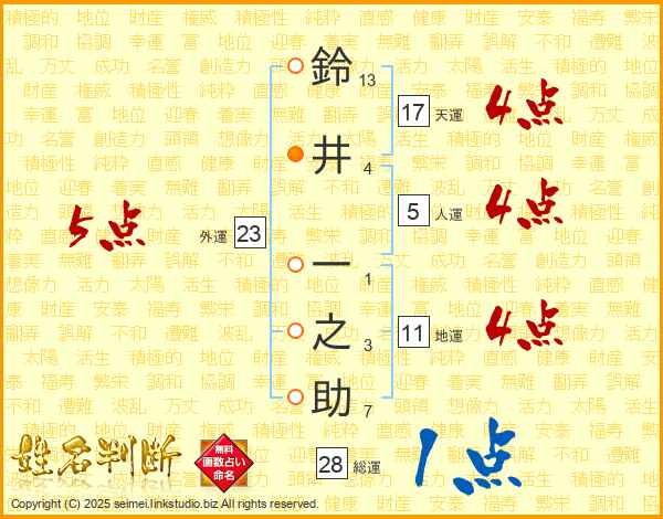 鈴井一之助さんの総運は28画の1点!