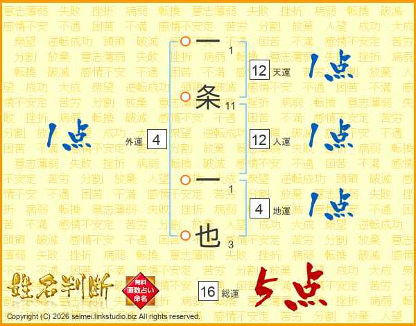 一条一也さんの人運は12画の1点!