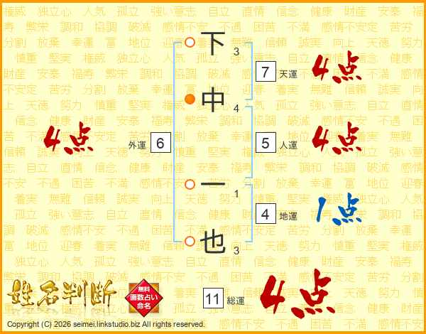 下中一也さんの総運は11画の4点!