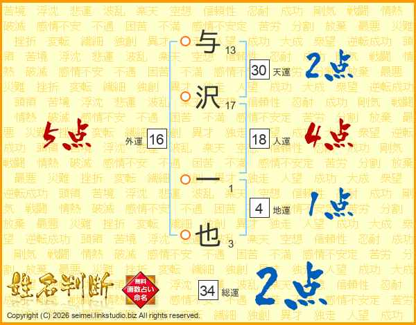 与沢一也さんの天運は30画の2点!