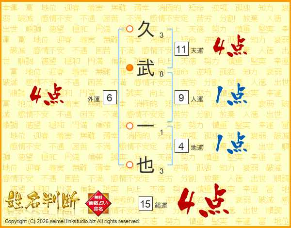 久武一也さんの総運は15画の4点!