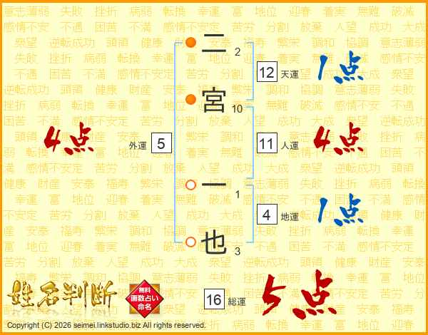 二宮一也さんの人運は11画の4点!
