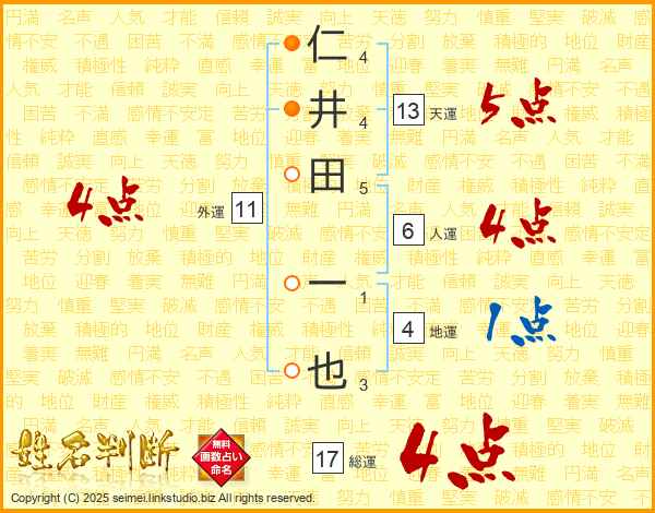 仁(4画)井(4画)田(5画) 一(1画)也(3画)