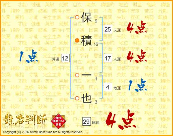 保積一也さんの総運は29画の4点!