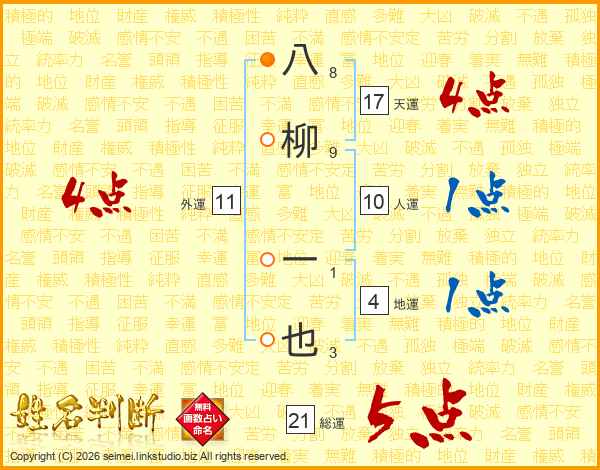 八柳一也さんの天運は17画の4点!