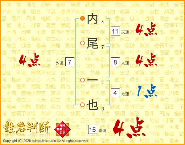 内尾一也さんの天運は11画の4点!