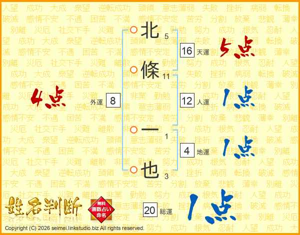北條一也さんの天運は16画の5点!
