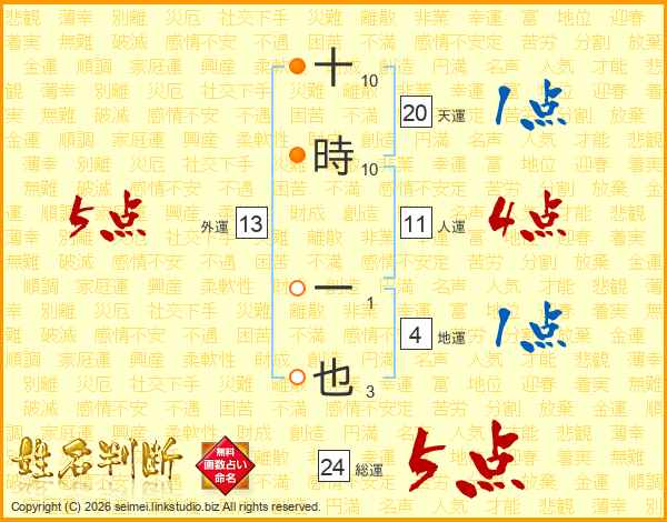 十時一也さんの天運は20画の1点!