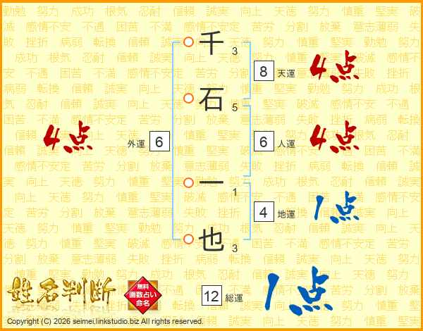 千石一也さんの総運は12画の1点!