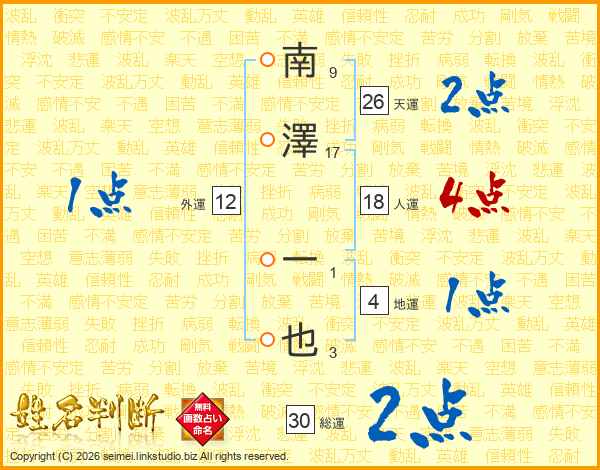 南澤一也さんの総運は30画の2点!