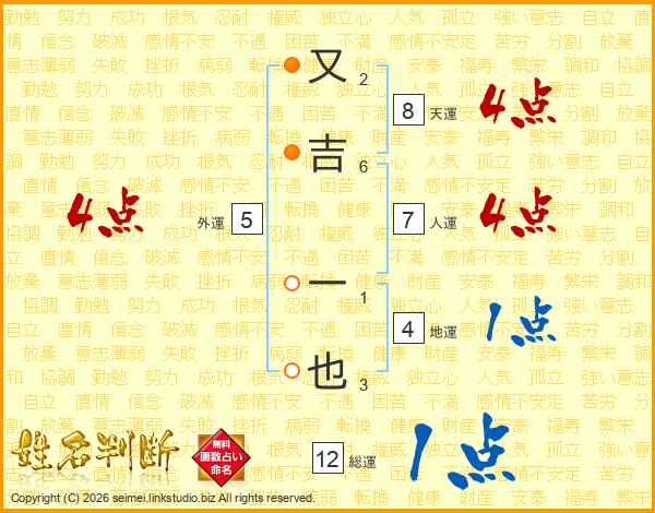 又吉一也さんの天運は8画の4点!
