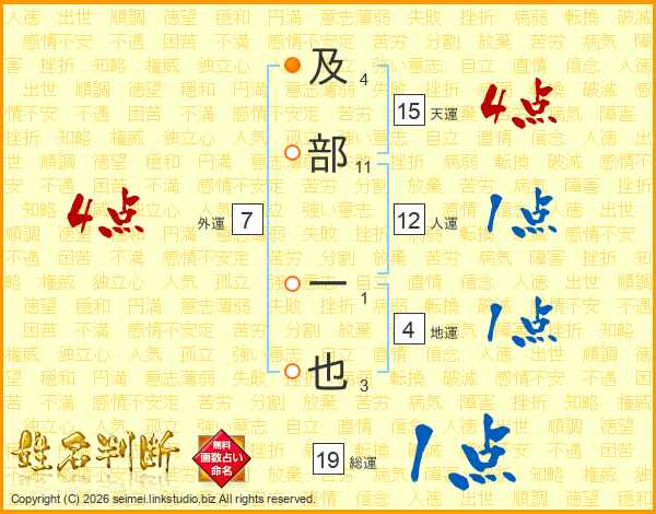 及部一也さんの総運は19画の1点!