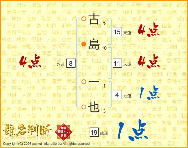 古島一也さんの人運は11画の4点!