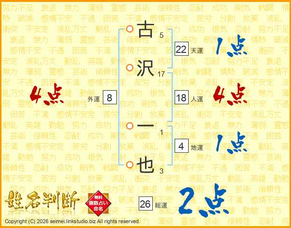 古沢一也さんの総運は26画の2点!