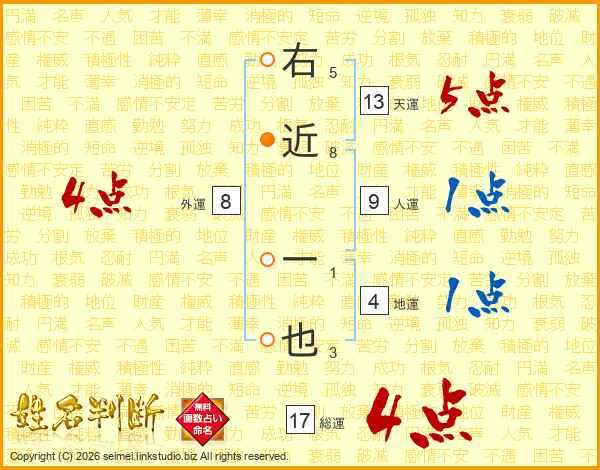 右近一也さんの総運は17画の4点!