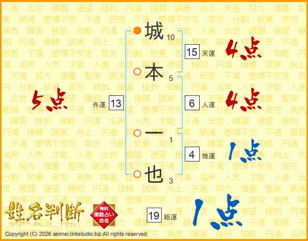 城本一也さんの天運は15画の4点!