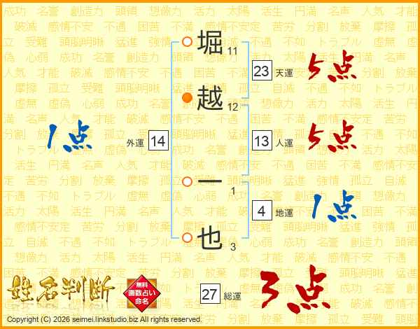 堀越一也さんの人運は13画の5点!