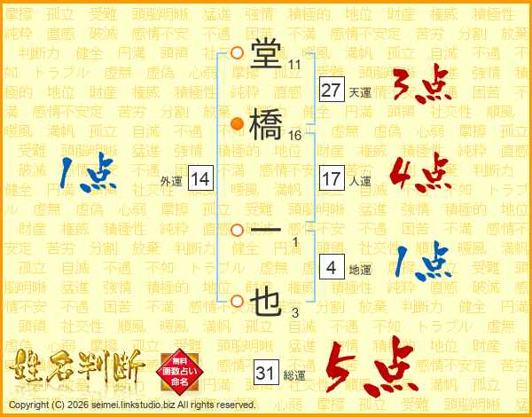 堂橋一也さんの総運は31画の5点!