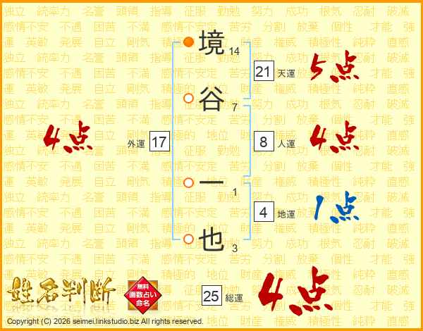 境谷一也さんの総運は25画の4点!