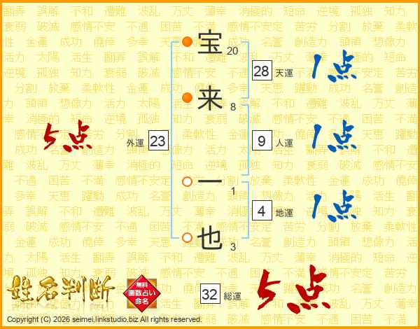 宝来一也さんの総運は32画の5点!