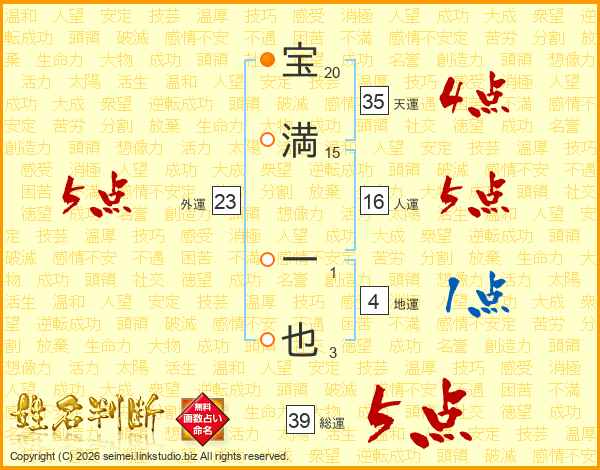 宝(20画)満(15画) 一(1画)也(3画)