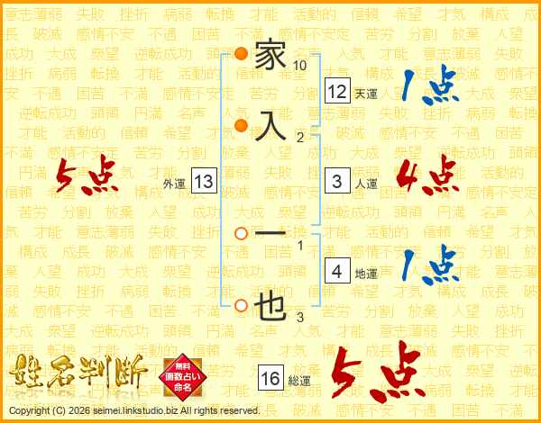家入一也さんの外運は13画の5点!