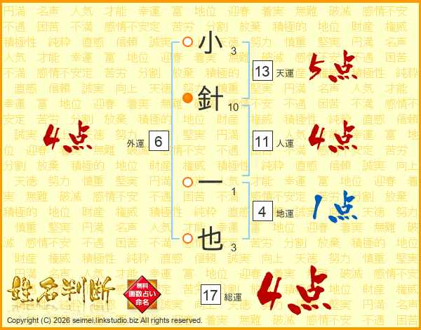 小針一也さんの総運は17画の4点!