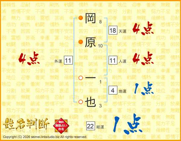 岡原一也さんの人運は11画の4点!
