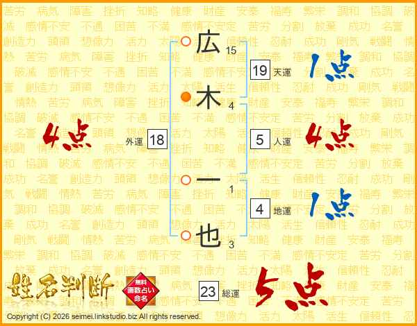 広木一也さんの総運は23画の5点!
